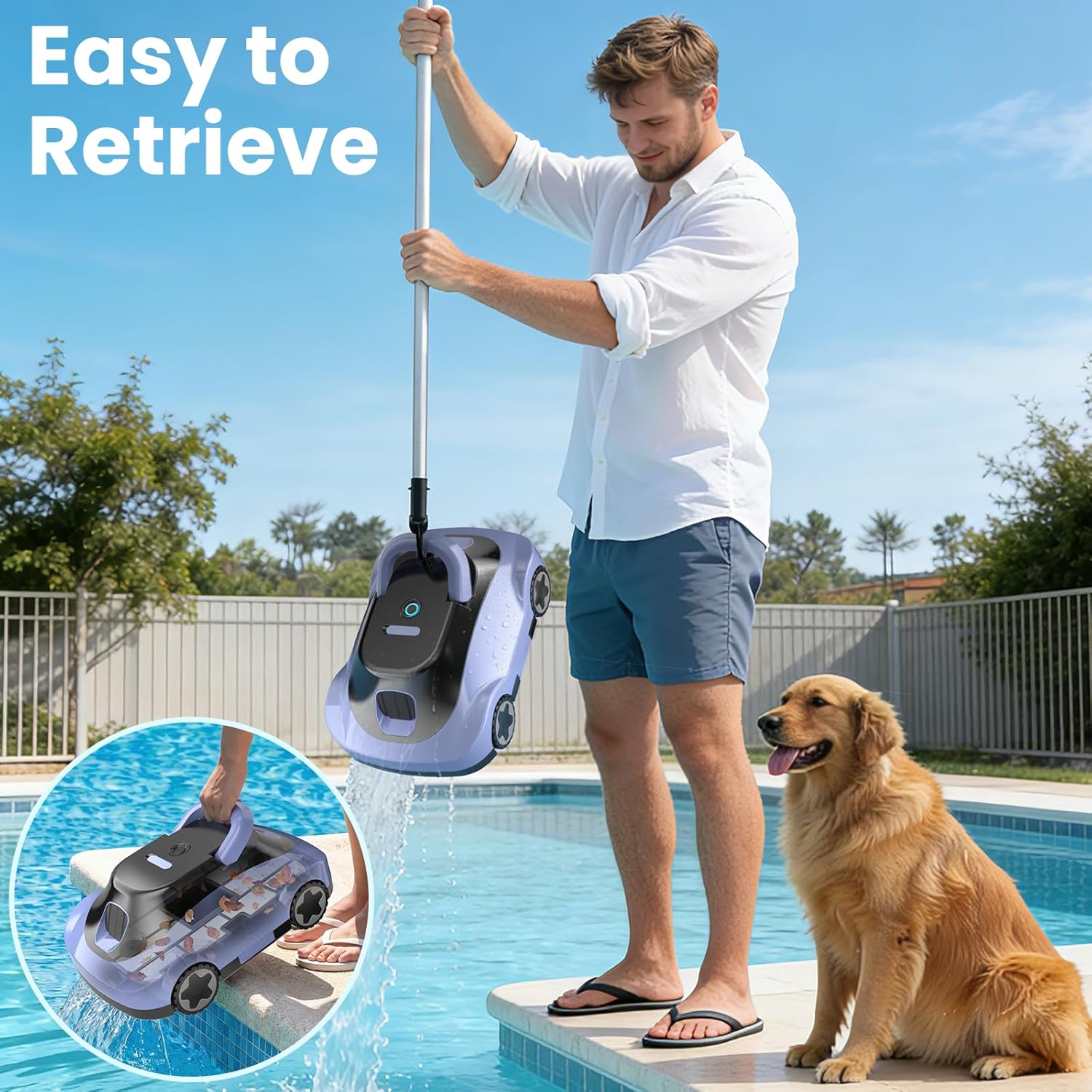 Keep your pool clean with less effort using this Zebary C5 cordless robotic pool cleaner designed for above-ground and flat pools up to 2,200 sq. ft. Powered by a high-efficiency battery, it delivers up to 180 minutes of runtime with consistent suction throughout the entire cleaning cycle. Built for extended, one-cycle cleaning, it effectively captures leaves, dirt, sand, and fine debris. The cordless design with auto-parking ensures easy retrieval, while the large 3L debris basket supports longer, uninterrupted cleaning sessions.