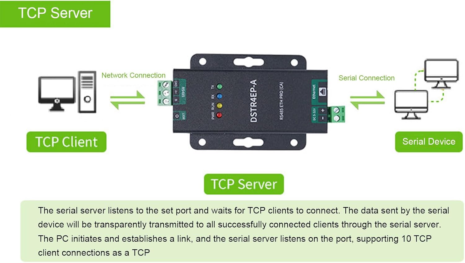Spec: Item Type: 485 ETH PRO Serial to Ethernet Module Material: Aluminum Alloy Installation: Mounting with Lugs or 3.5cm Universal Guide Rail Operating Temperature: -40-85°C Ethernet Port: RJ45, MDI or MDIX Automatic Line Conversion, Crossover Connection Auto Adaptation Baud Rate: 300bps-460800bps Operating Mode: Server, Client, UDP, UDP Multicast, UDP Dynamic Mode Conversion Protocols: for Modbus , for , for JSON, for Realcom Protocol, for HTTP Modbus Gateway: Support Mode, Storage Mode, Preconfigured Table (ZLMB) Mode, Support to RTU or ASCII IP and Address Resolution: Static or DHCP, Support DNS Resolution Communication Method: /IP Direct Communication, Virtual Serial Port Connection Quantity: Server: 10, Client: 7 Destination IP Configuration: ZLVirCOM Tool, WEB Browser (Customizable Webpage), Device Management Library, Serial AT Command Configuration, Device Cloud Management Package List: 1 x Module 2 x Terminal Blocks 1 x Screwdriver 1 x Ethernet cable
