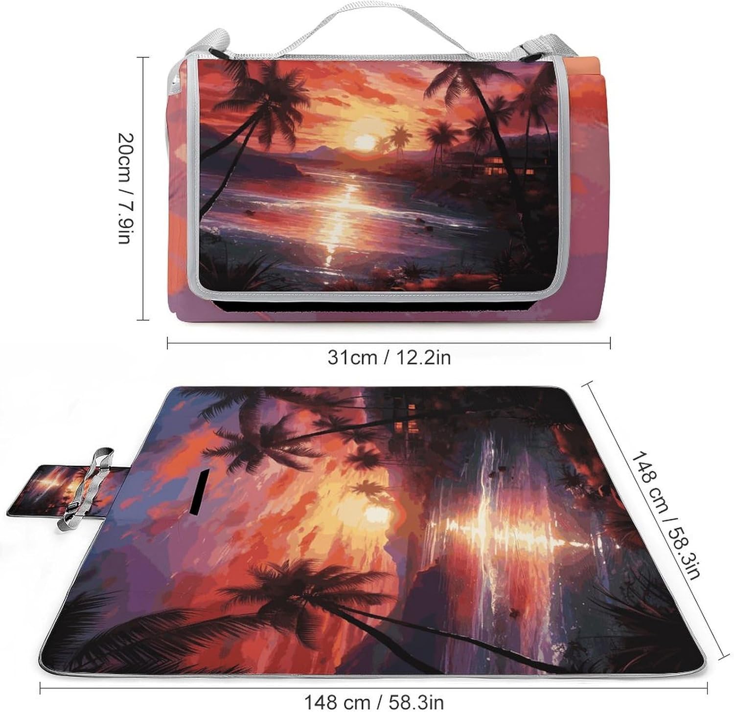 The Square Outdoor Colorful Tropical Sunset Picnic Mat whether you’re sharing cheese and crackers at a family picnic,stretching out solo after a hike,or arranging a cozy corner for outdoor concerts.The fleece and sponge construction isn’t about padding alone-it’s about how the layers interact:the fleece cradles skin with fine,while the sponge responds to pressure without bottoming out,offering support whether you're seated cross-legged or lying back on sun-warmed grass. This Square Outdoor Colorful Tropical Sunset Picnic Mat moves with your rhythm.Roll it once,secure it with the integrated Velcro band,and go.slipped into the side pocket of a commuter backpack,stacked flat in a compact SUV cargo area,or draped over a folding chair handle for quick carry.As a Sandproof Picnic Mat,it handles beach outings without clinging grit;as an Indoor Play Mat,it adds soft definition to living room floors or basement corners-its surface smooth enough,textured just enough to keep cushions from sliding.Whether you reach for it on a misty spring morning,a golden-hour summer evening,or a crisp autumn afternoon,the Square Outdoor Picnic Mat meets the moment.Under a picnic basket at the park,spread beneath string lights for backyard dinners,rolled beside a camp chair at a music festival,or unfurled mid-hike for a rest stop with a view.Not just a Classical Picnic Blanket,not just a Fashion Beach Pad.For those who value ease,consistency,and quiet comfort across seasons and settings-the Square Outdoor Picnic Mat becomes part of how you live outside.