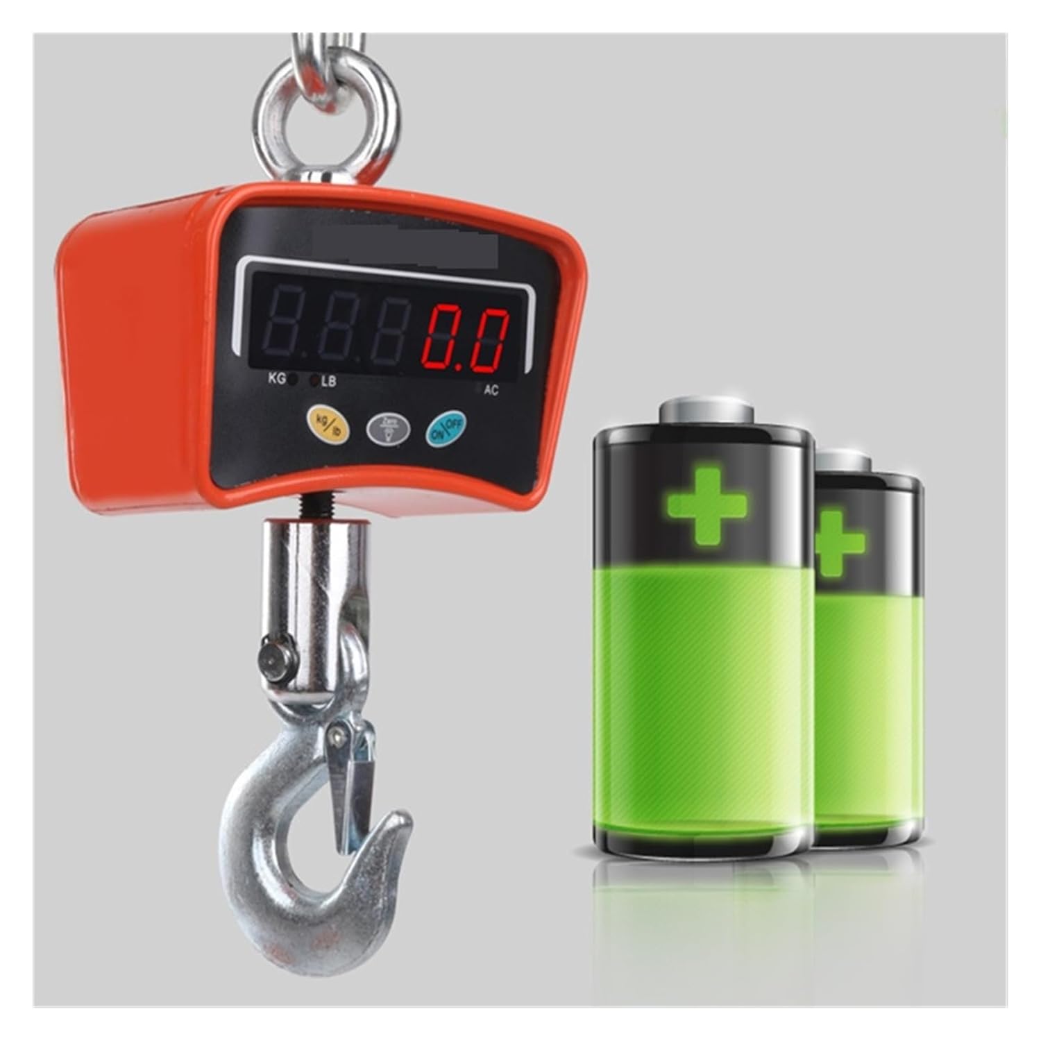 Product description:Product Name: Precision Electronic Hook ScaleMaterial: aluminum shell, stainless steel hookcolor is orangeMaximum load: 500kgRated voltage: 6V DC/1.3AhSafe overload: 150%F.SDestructive Overload: 300% F.SDisplay size: 6.3x2cm