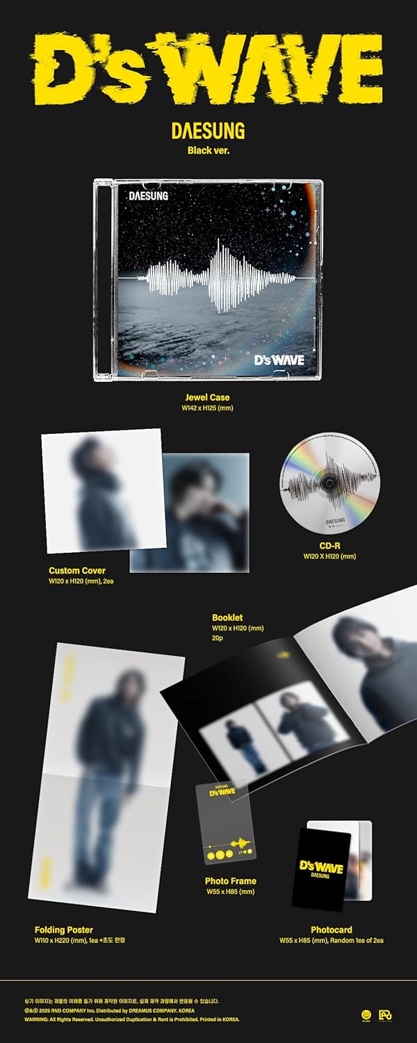 Outer case is to only protect inclusions inside therefore out box damages cannot be a reason for a RETURN or EXCHANGE. Please take an UN-BOXING video right after the delivery arrived in case of any defective or missing items inside. Release Date : 2025.04.08 Yellow ver : CD + 56p Photobook + Stickers + 2 Photocard (Random 2 out of 4) + Bookmark + 8p Lyric Paper + Envelope + Folding Poster Black ver : CD + 20p Booklet + Custom Cover + Photo Frame + Photocard (Random 1 out of 2) Pre-Order Gift : ① Yellow ver : Folding Poster ② Black ver : Mini Folding Poster Pre-order Gifts will only be presented to products purchased during the pre-order period. If you place an order after the release date of the album, pre-order gifts will not be presented when the pre-order gifts are exhausted. from Korea, Republic of 100% Original Brand New Item Will be Count Towards Hanteo and Gaon Chart