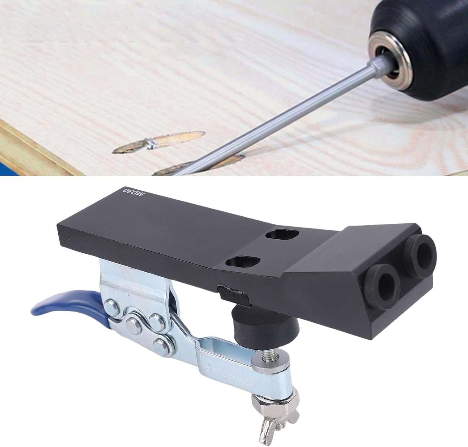 [Efficient Drilling] Pocket Hole Jig Kit with detachable sponge plug reduces tension, ensuring smooth drilling through various boards. [Quick Clamping System] Features innovative quick clamp system for rapid adjustments, enhancing your woodworking projects' efficiency. [Three Way Chip Removal] Integrated side chip removal ports keep the workspace clean by preventing debris from clogging the bit. [Customizable Depth] 15 degree drilling locator with a built-in positioning ruler helps you set the correct drilling depth easily. [Versatile Applications] Perfect for L and T shaped plate splicing, making it ideal for various woodworking tasks and projects. Item Type: Pocket Hole Jig Kit Model: MD30 Main Material: Aluminum alloy Drill Bushing Material: 45 steel (carburized and hardened) Processing Thickness: Approx. 8-30mm / 0.31-1.18in Main Hole Diameter: Approx. 9mm / 0.35in Hole Spacing Diameter: Approx. 24mm / 0.94in Slider Stroke: Approx. 31mm / 1.22in Press Block Material: Rubber Application: Drilling pocket holes, used for L shaped and T shaped plate splicing Functions: 1. Quick clamping system 2. Three way chip removal 3. Angle adjustment mechanism 1 x Pocket Hole Jig 1 x 9mm Fine Grinding Pocket Hole Drill Bit 1 x Air Bit 2 x Hex Wrench 1 x Limit 1 x Accessory