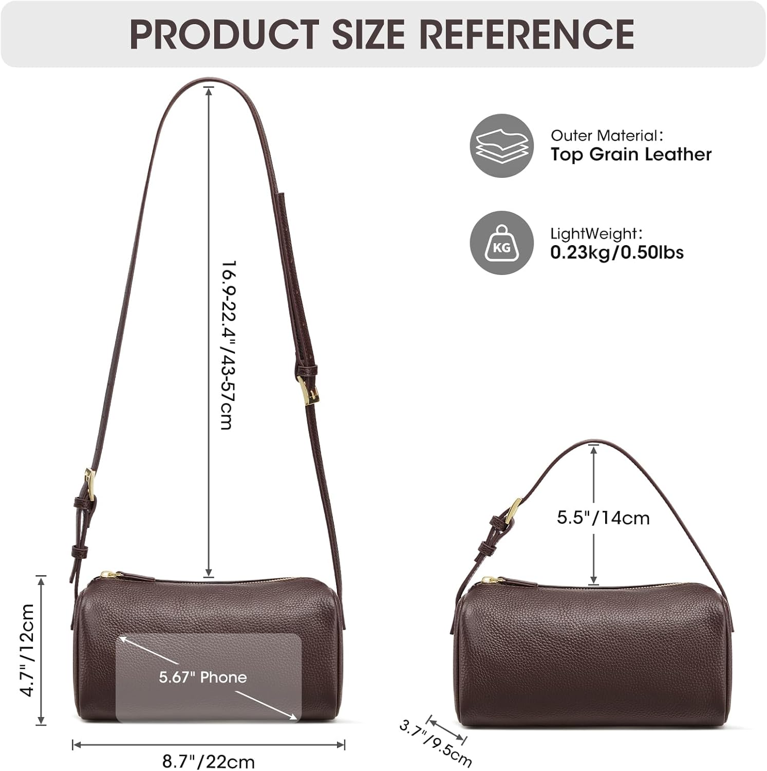 | Outer Material | Top Grain Pebbled Cowhide Leather |