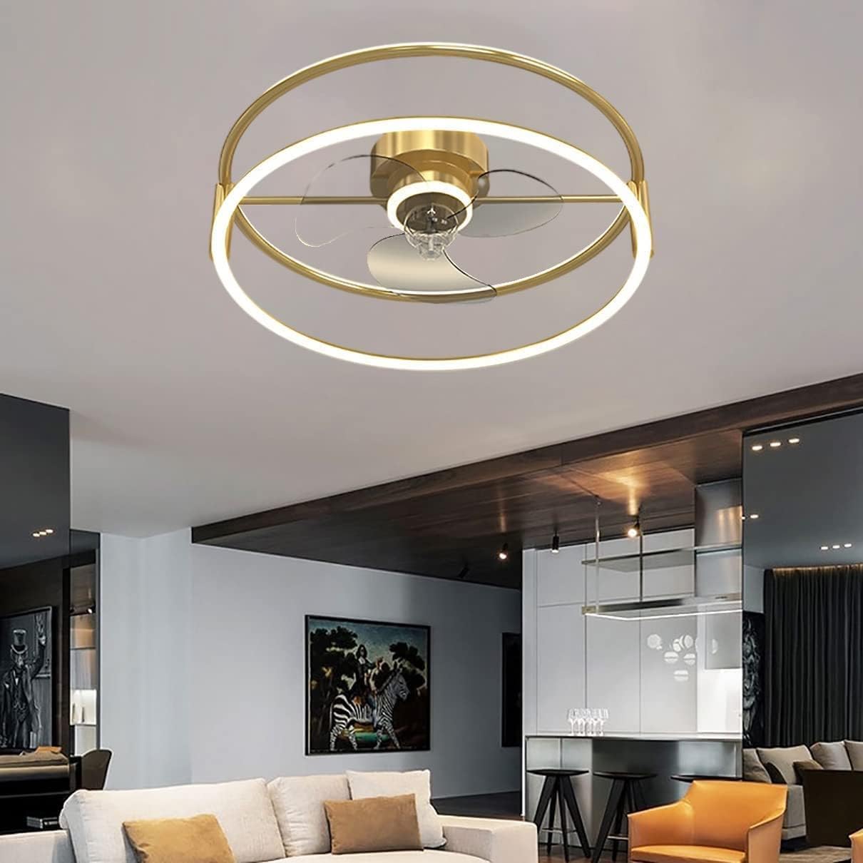 Modern Golden Ring LED Ceiling Fan with Light 3-Speed Timer Quiet with Remote Control Bedroom LED Ceiling Lamp with Fan and Remote Control AC Motor Dimmable for Dining Room Living Room