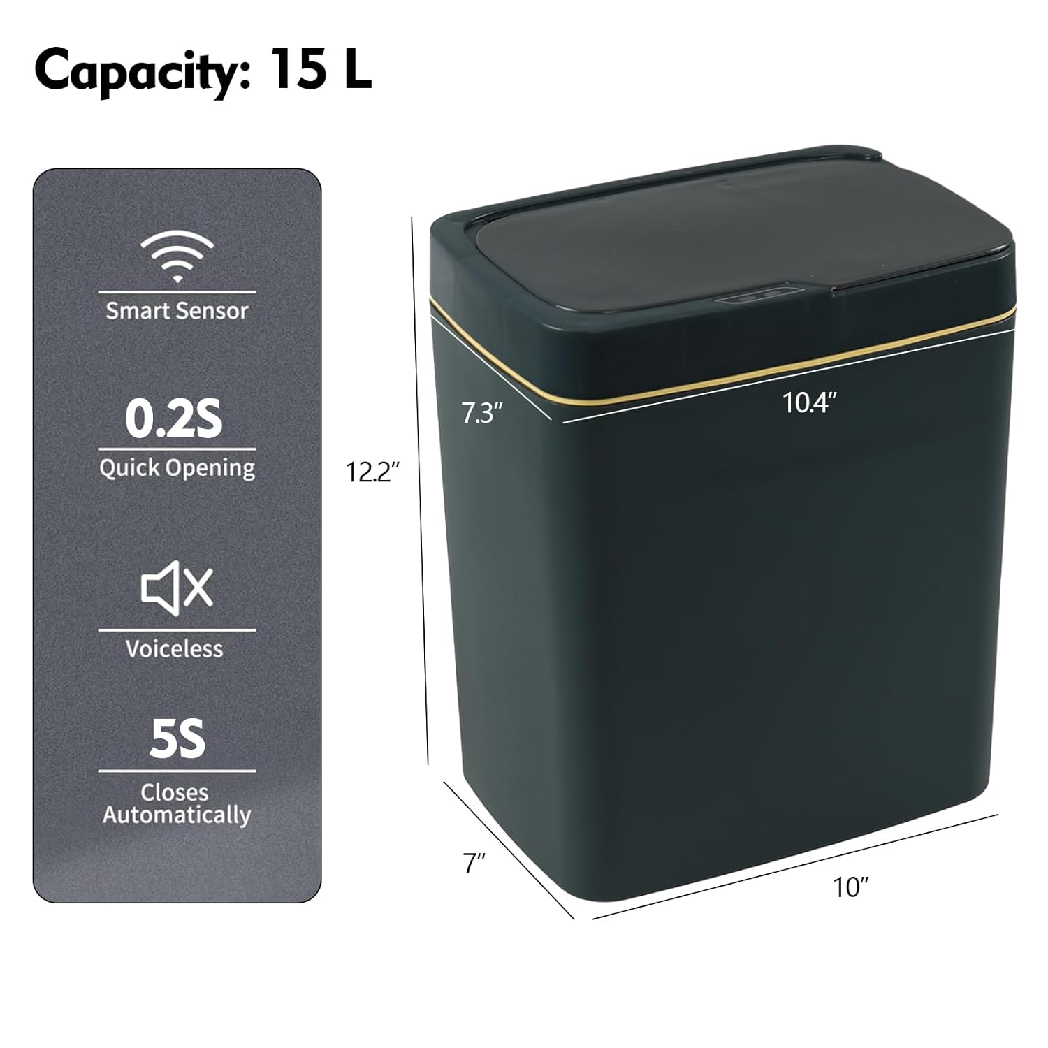 Obstnny 1 pack 15 liter plastic smart sensor trash bin, green color, size: 10.4" x 7.3" x 12.2", made of high-quality PP plastic, it is durable and long-lasting, and uses advanced infrared sensing technology to automatically open and close the lid, allowing you to handle garbage without touch.