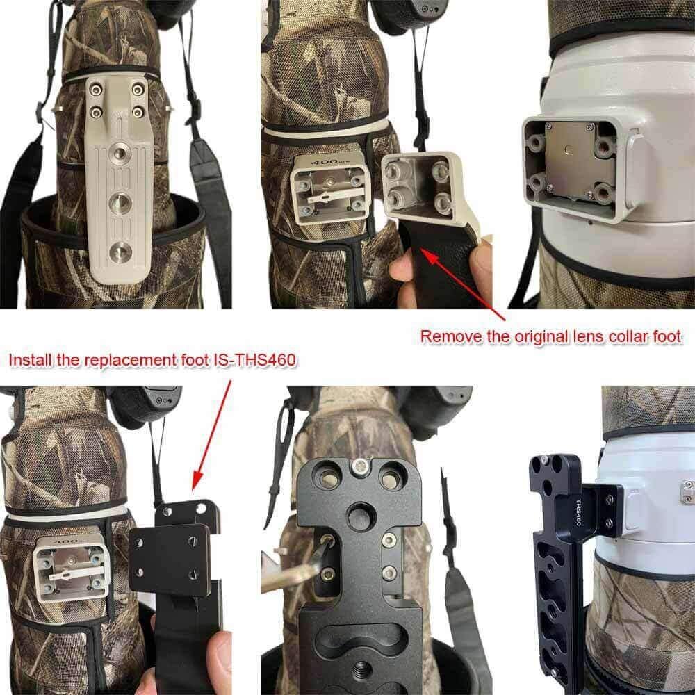 iShoot Lens Collar Replacement Foot Tripod Mount Ring Base IS-THS460 Compatible with Sony FE 400 f/2.8 GM OSS (SEL400F28GM) & Sony FE 600 f/4 GM OSS (SEL600F40GM) Bottom is Arca Fit Quick Release Plate Feature for RRS / Arca-Swiss Fit Ballhead Clamp Main Features: 1. The lens collar replacement foot is made of high-density Aviation Aluminum, lightweight and solid; precisely machined by world-class high-end CNC turning center; hollowed-out work processed by Multi-Diamond Cutter finely; 2. The Tripod mount ring base surface using vibration polishing technology and multiple anodic oxidation, greatly increased the color uniformity of the metal surface; the appearance and exquisite workmanship is much better than similar products made by mold; 3. The whole piece of aluminum is engraved and formed at one time, and the lens collar foot is about 150mm in length, 40mm in width, 43mm in height, and about 150g in net weight; 4. The bottom quick release plate of the replacement foot is about 105mm in length, designed with finger positions, adopts ARCA-SWISS / RRS standard fit, and reserved strap hole, 1/4 and 3/8 screw holes, telephoto bracket extension holes, equipped with stainless steel non-slip screws; 5. Bottom quick release plate is AS standard, compatible with RRS / ARCA-SWISS / PMG / WIMBERLEY / MARKINS / PHOTOCLAM / SUNWAYFOTO / BENRO / SIRUI / MARSACE / ISHOOT ball head of Arca 39mm fit, suitable for iShoot IS-JZ30 / IS-JZ50 / IS-JZ64 / IS-QJ58 / IS-QJ64-FD / IS-JZ60BK / IS-JZ70MFT / IS-JZ80BK. Compatible with: Sony FE 400mm F2.8 GM OSS (SEL400F28GM) Sony FE 600mm F4 GM OSS (SEL600F40GM) Package Includes: 1 x iShoot Lens Collar Foot IS-THS460 for Sony FE 400 f/2.8 GM OSS & Sony FE 600 f/4 GM OSS (Note: The other items in the photos not listed here are for illustrating only, not included)