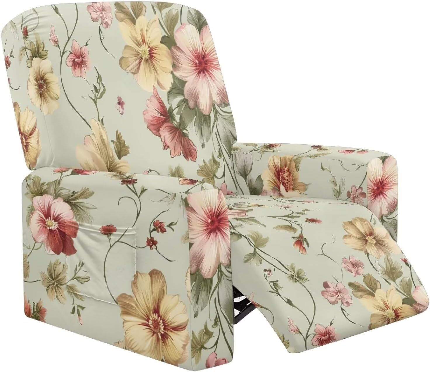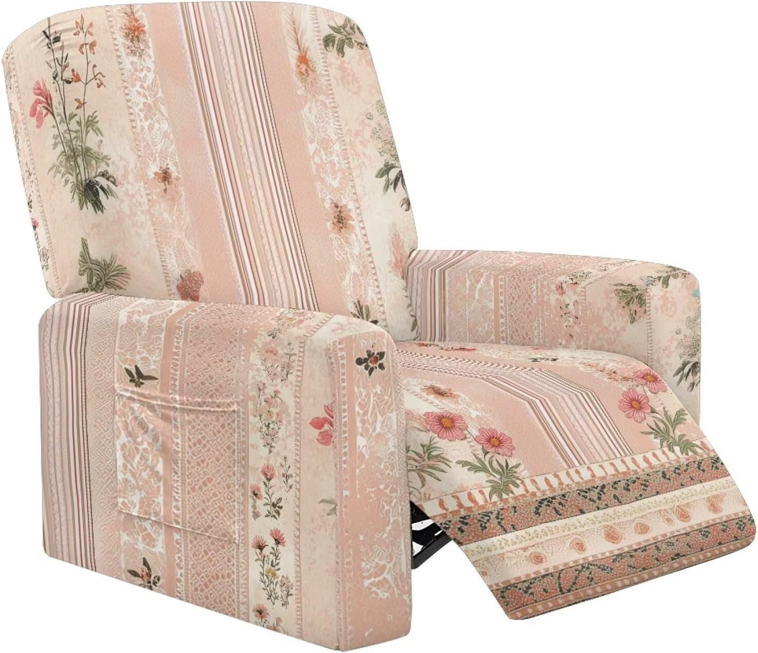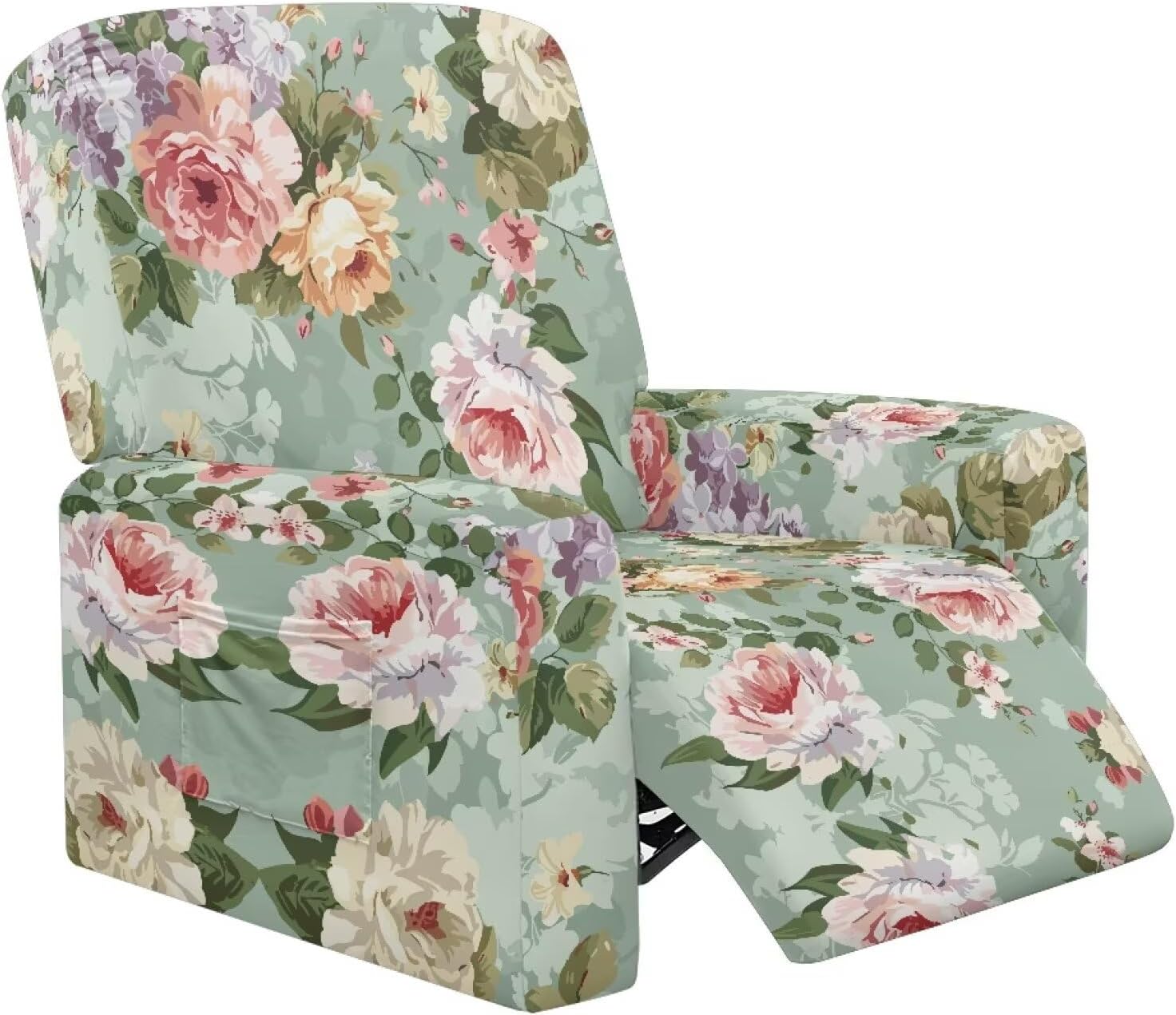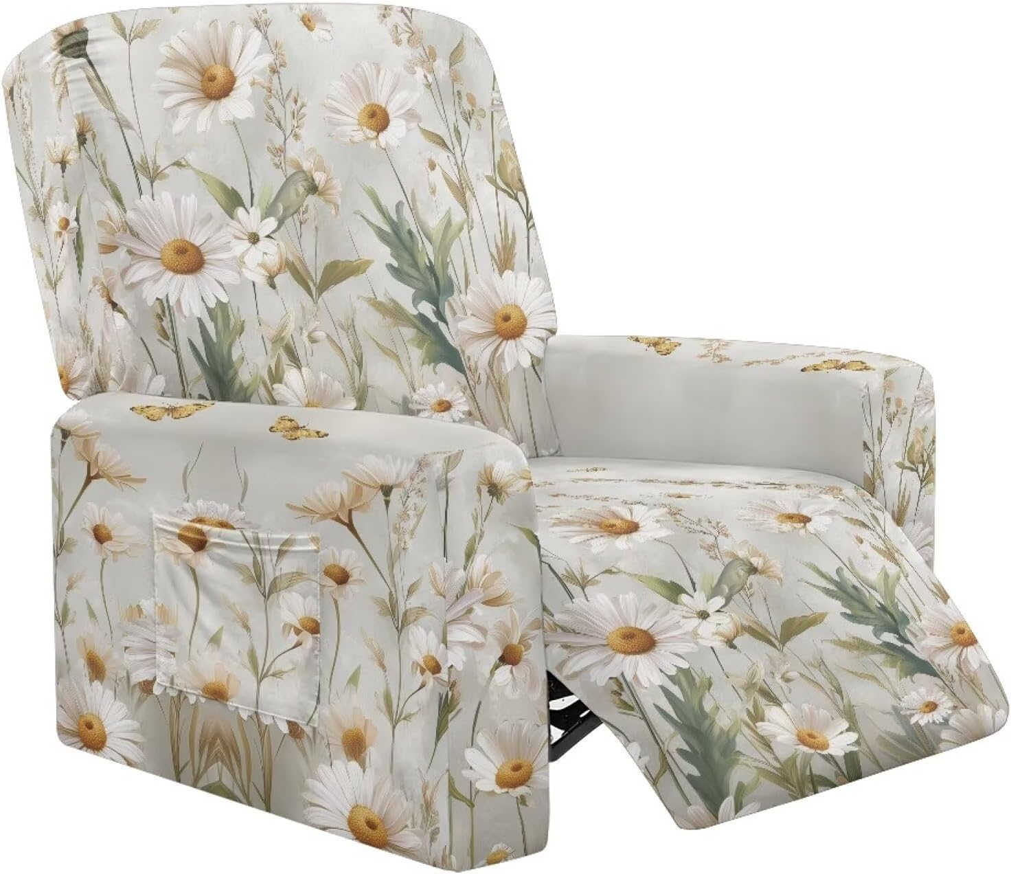 【Material Composition】Polyester+Spandex【Design Features】Full elastic edge with secure straps for non-slip fitIntegrated armrest covers with functional storage pocketsStretch fabric conforms to chair shape without wrinkling【Protection Performance】Resists spills, stains, and pet damageDurable construction prevents fading and wear【Size Specifications】Fits recliners 26in-35in Depth x 27in-37in Width x 30in-41in Height, Measure your recliner's depth, width, and height before ordering.【Usage Scenarios】Ideal for living rooms, apartments, and pet-friendly households. Perfect for refreshing old furniture or protecting new investments. Suitable for most recliner styles with arms.【Note】 Because of different measurement methods, pls allow 1in error.