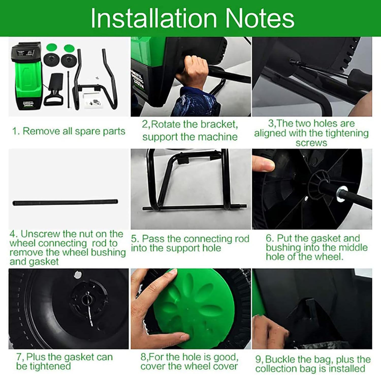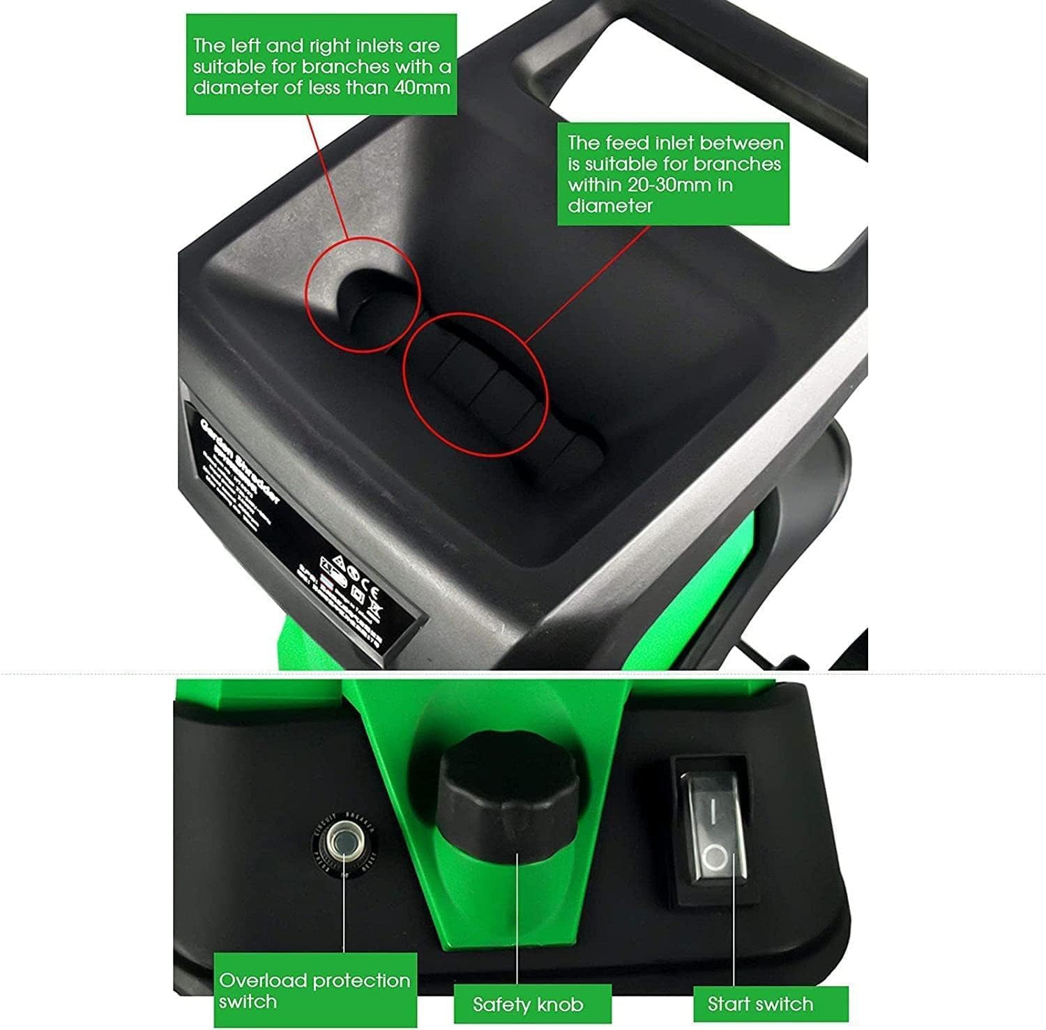 ✪ The electric garden shredder material of the machine is made of high -quality reinforced engineering. It has good stability and impact resistance and can withstand shock and vibration loads. The shredding effect is achieved by cutting the blade high -speed cutting✪【Product Description】 - Name: Electric Shredder, Electric Leaf Shredder, Electric Leaf Mulcher/Shredder - Voltage (V): 220V - Power (W): 2400W - No-load speed (min⁻¹): 4500rpm - Cutting diameter (mm): 40mm - Noise level dB(A): 110dB - Capacity (L): 50L - Packaging Dimensions: 64 × 32 × 38 cm - Weight (kg): 10.7 kg✪【Package List】 - 1*Garden Shredder Wood Chipper - 1*50L Collection Bag✪【Note】 - Due to different monitors and lighting effects, the actual colour of the item may differ slightly from the colour shown in the picture. - Please allow 1-2cm deviation due to manual measurement.