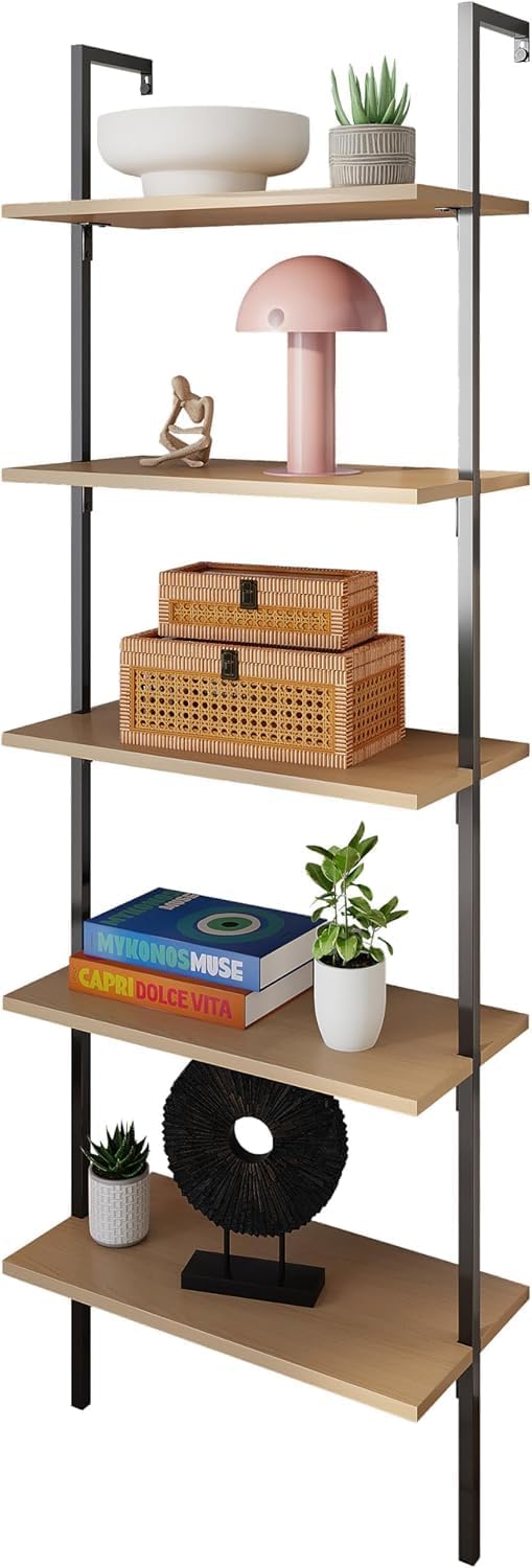 Add industrial-style open storage to your kitchen or bathroom with our classic wall-hung open ladder shelving. The durable MDF shelf boards have a modern woodgrain look, and attach to the wall via upright steel supports. Easy to install, these shelves can replace upper cabinets to display pottery, plants or linens.