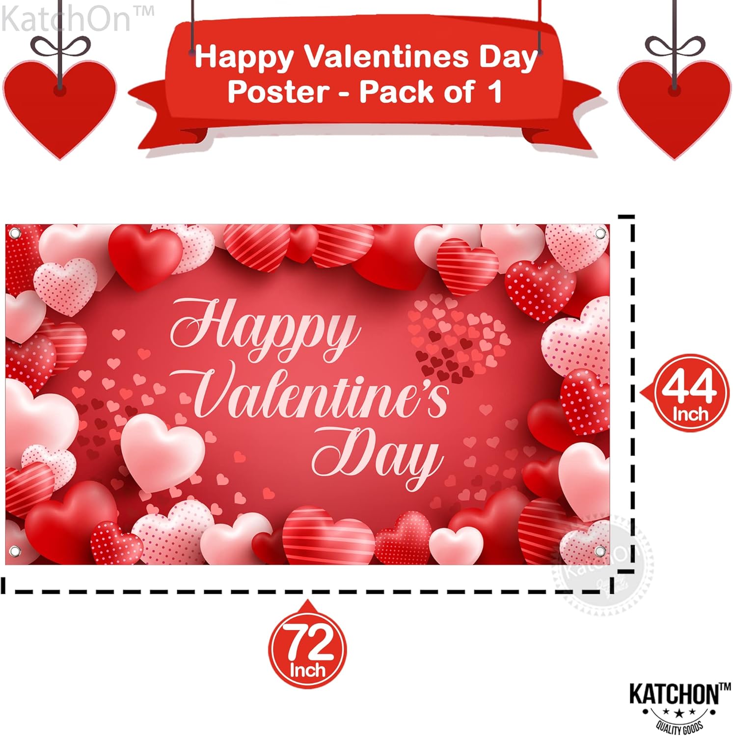 What will you get? 1) Happy Valentines Day Banner - XtraLarge 72x44 Inch 2) Red and Pink Balloon Arch Kit - Huge 18 Inch, Pack of 186
