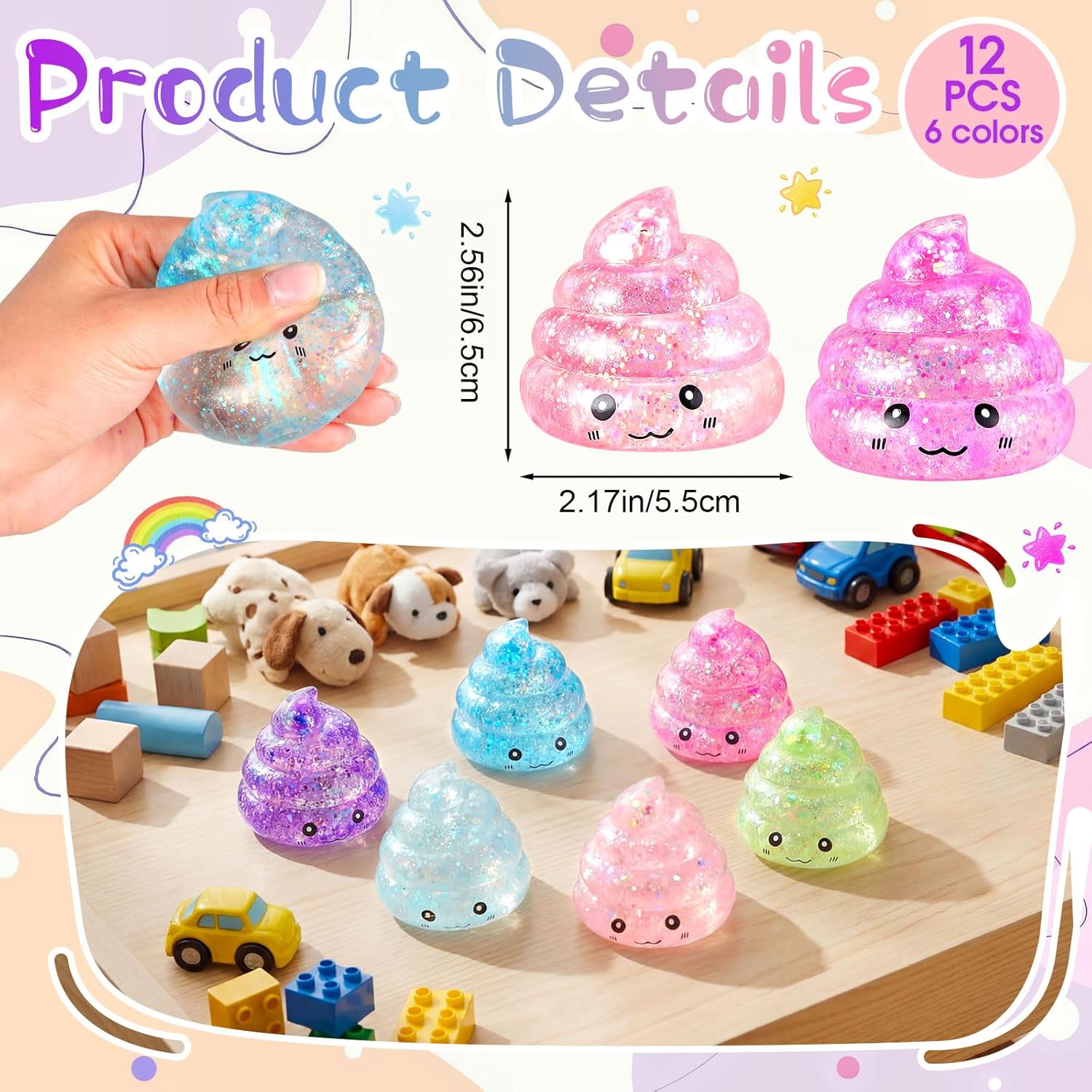 Features: Boost Focus and Concentration: Beyond stress relief, these mini Poop Relief Toy Balls are ideal tools for improving attention and concentration. Their interactive nature encourages mindful squeezing and playing, helping adults to enhance focus and productivity in various environments. Exceptional Portability: Lightweight and portable, these squid-shaped stress balls are designed with your busy lifestyle in mind. Effortlessly tuck them into your bag for instant stress relief—good for a moment of calm during work meetings, school sessions, or long journeys. Specifications: Material: stretchable silicone Color: reds, blues, cyans, greens, pinks, and purples Size: about 2.56 x 2.17 x 2.17 inches/ 6.5 x 5.5 x 5.5 cm Package includes: 16 x Poop Relief Toy Balls Notes: Manual measurement, please allow slight errors on size. The color may exist a slight difference due to different screen displays.
