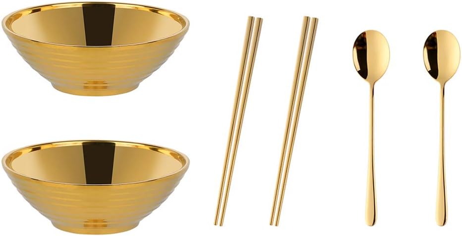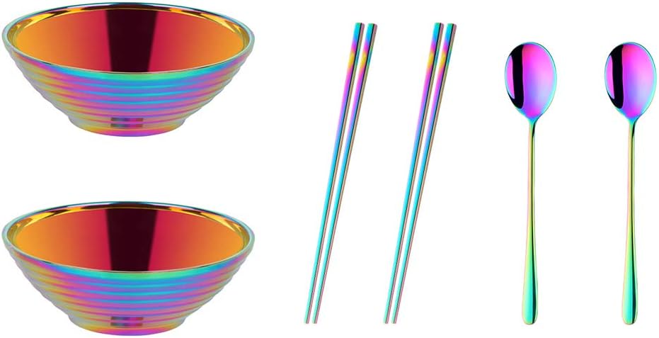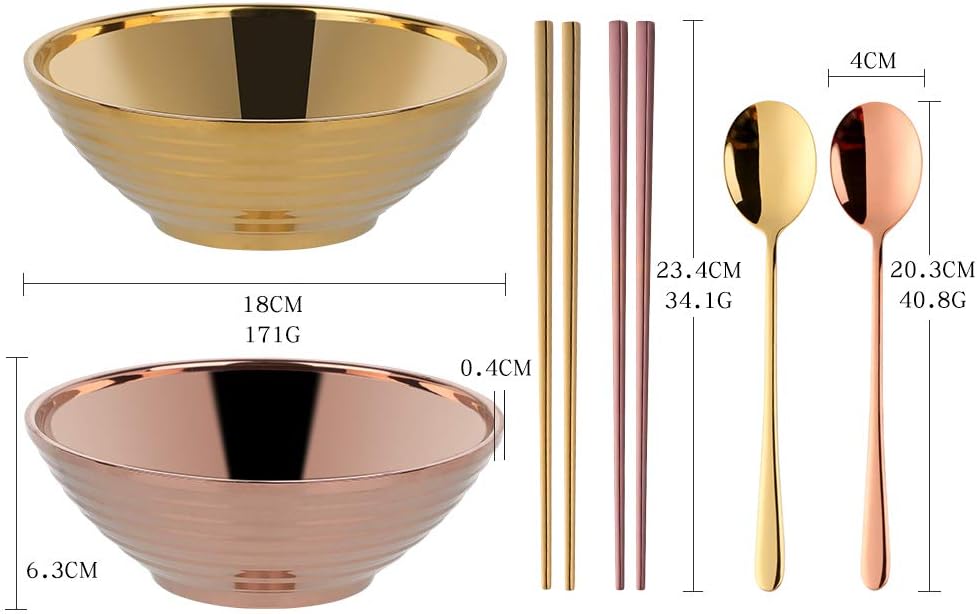 Specification Size:bowl-diameter -7.1inchChopsticks-legth-9.3inchSpoon -legth-8inch Color:Gold*Rose Gold/Rainbow*Rose Gold/Rainbow/Rose Gold/Gold Want to Know Why So Many Customers ABSOLUTELY LOVE our Ramen Bowl Set? Here’s Why! CREATE A REAL AUTHENTIC FEELING With our premium Ramen Bowl Set you can create that authentic atmosphere all from the comfort of your home. It will feel like visiting your favorite country or restaurant and experiencing their wonderful cuisine. SUPER EASY TO CLEAN AND USE The Ramen Bowl Set is dishwasher safe. This will save your time and make life much easier. A PERFECT GIFT. With its lovely traditional design with five different beautiful colors, this Ramen Bowl Set is a perfect present for friends, family or co-workers.